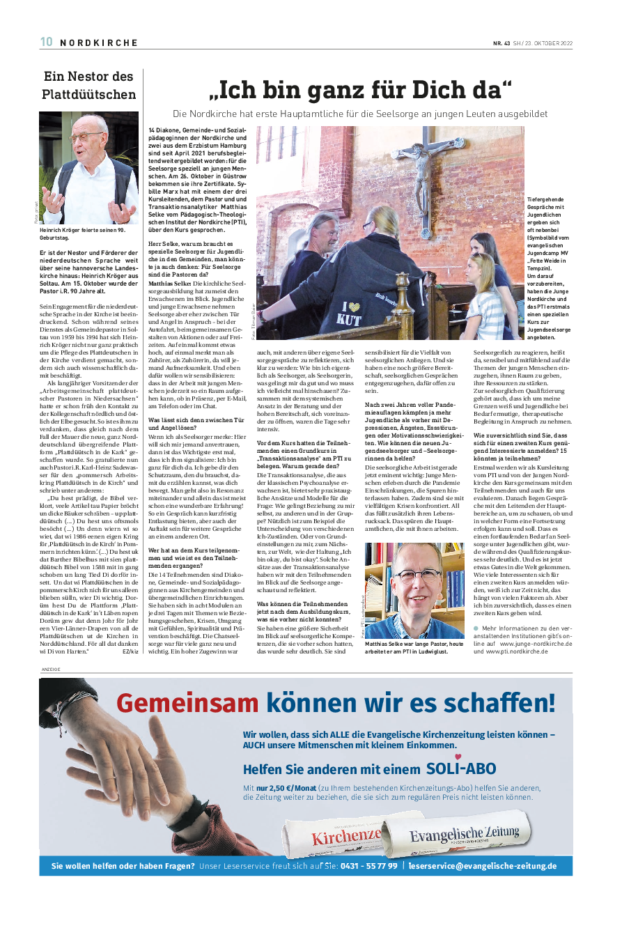 Die Ev. Zeitung berichtet über die Weiterbildung für Seelsorge an jungen Menschen
